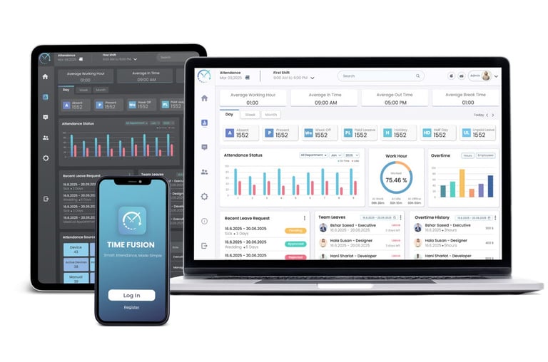 Time Fusion is a cloud-based workforce management platform that helps businesses track employee attendance, manage overtime, monitor mobile and field employees with geo-fencing, and generate payroll-ready reports — all from one powerful system.